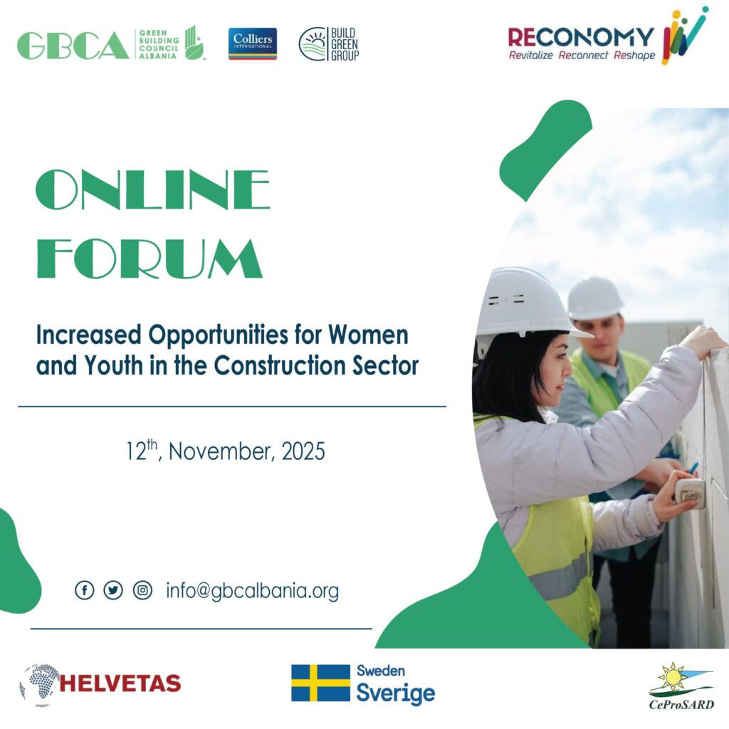 Green Building Council Albania is organizing a dedicated online forum focused on empowering women and youth in Albania’s construction sector and accelerating the transition toward a greener, more resilient built environment.